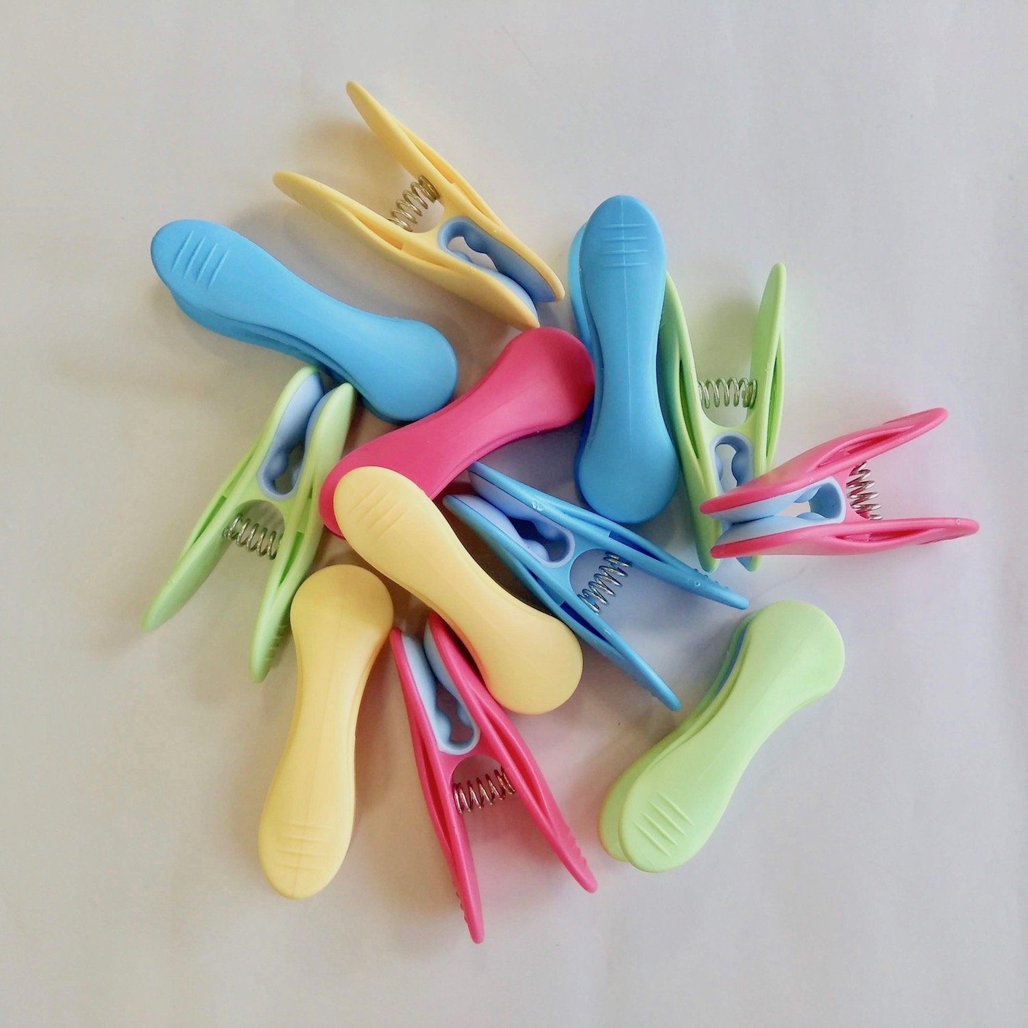 サイズ:約L66×H27×D22mm(1個) 材質:プラスチック(UV加工済)・ゴム 内容:ミックス 計12個入  生産国 : フランス UV加工で紫外線に強く、色褪せしません。はさみのおなかが丸いので、洗濯物に跡がつきません。丈夫なバネで長くご愛用いただけます。