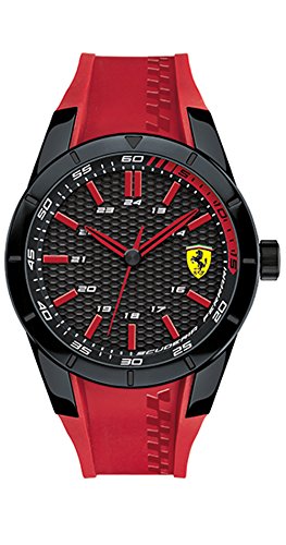 -. Feature : FERRARI REDREV TR90 men's watch. Red silicone strap, rubber case in black and dial in black and red.