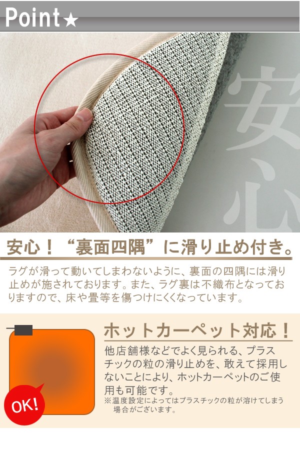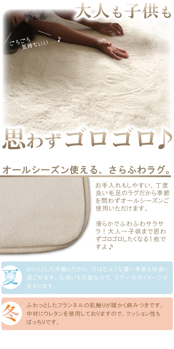 ※※初回完売の為 再入荷決定※※前回のセール時即完売した人気商品さらっとした短毛なので季節を問わずオールシーズン活躍大人気のラグマット 2サイズ×3カラー ※できるだけ実物と同じ色合いになるようにしておりますが、パソコンモニタの環境などによって実物と色合いが異なる場合がございますので予めご了承下さい。