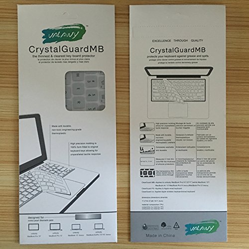 Feature : Perfect fit for the All Latest MacBook Air 11.6 with or w/out Retina Display / Every key is individually molded and specially printed on clear silicone for a long lasting professional look. / Design to provide the full protection for your Macbook keyboard against dust spills, key wear and more. / Extra slim silicone skin, made it easier for typing. The keywords are printed on the keyboard cover / Flexible, washable, easy to apply and remove for cleaning or disinfecting. Manufactured to the Highest Quality Available