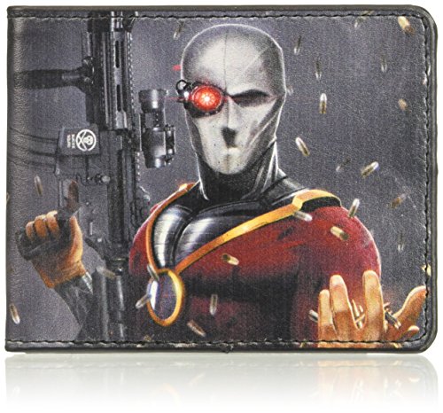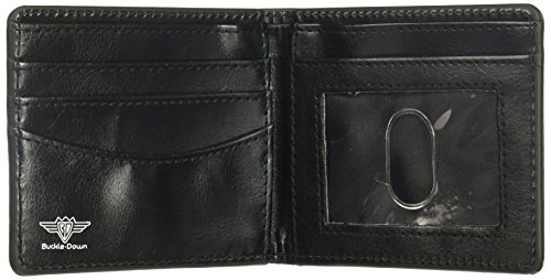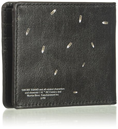 Studio : Buckle-Down Publisher : Buckle-Down Binding : Apparel Product Description This awesome men's bi-fold wallet is made from premium vegan leather. It measures 4.0x3.5x0.5 inches, and features the standard billfold, 5 card slots, and windowed id holder. The logos are applied using advanced printing technologies, so the wallet will still look good after years of hard use. This product is officially licensed by suicide squad and made in USA by Buckle-Down Inc. 0
