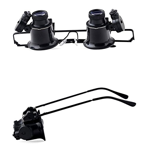 -. Binding : Eyewear -. Brand : Generic -. EAN : 6901921109794 -. Feature : - 20X magnifying power can be applied in mechanical processing, electronic repair, timepieces repair, etc. / - Bright LED Light can be used in dark situation / - Powered by 4 CR1620 button batteries (included) / - It allows close viewing of small objects such as coins, stamps and so on Brand BIJIA -. Label : Generic -. Manufacturer : Generic -. MPN : 180686001 -. PartNumber : 180686001 -. ProductGroup : Sports -. ProductTypeName : SPORTING_GOODS -. Publisher : Generic -. Studio : Generic -. Title : BIJIA 20X Lightweight Eyeglasses Type Magnifying Glasses with 2 LED Lights