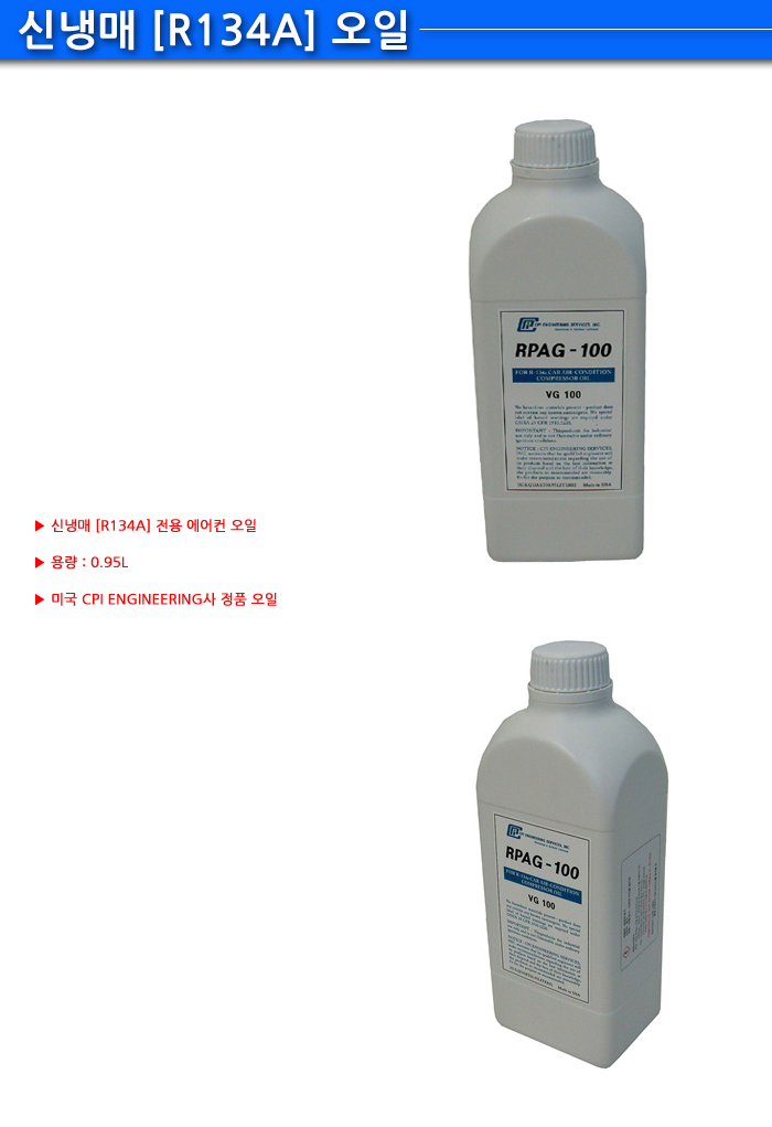 - 품명 및 모델명신냉매 오일