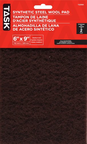 Task Tools T22594 6-Inch by 9-Inch Synthetic Steel Wool Pad, Med, Maroon, 2-Pack