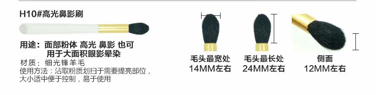 · 正常使用方法:先用清水打湿刷毛,取适量清洁剂涂抹在浸湿的刷毛上,轻轻揉搓然后用清水冲洗干净。切记不可逆毛清洗,保持刷毛自然形状。