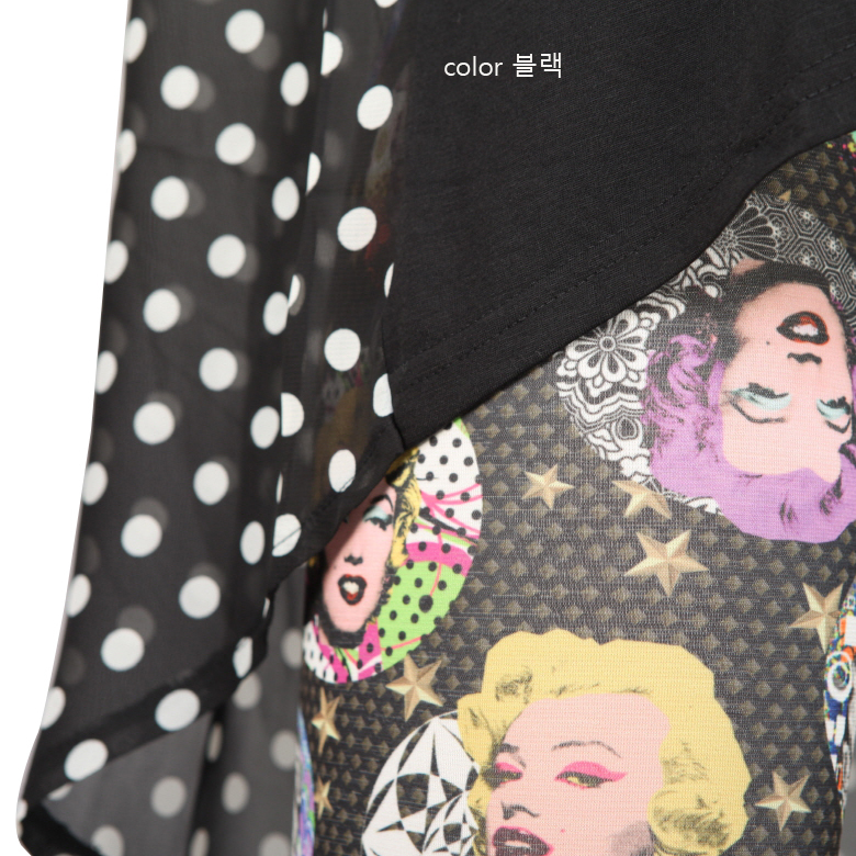 뒷면 배색은 도트 쉬폰 으로 되어있어