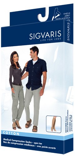 SIGVARIS Unisex COTTON 230 Open Toe Calf Compression Socks 20-30mmHg