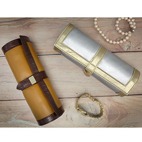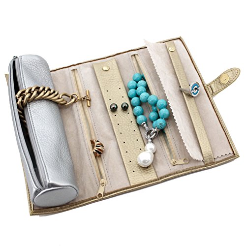 Travel Jewelry Roll Leather Compact Metallic Gold Silver