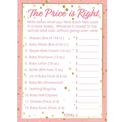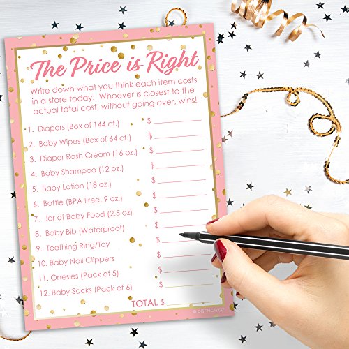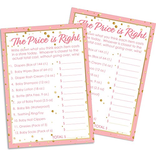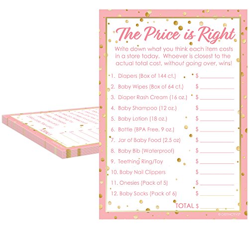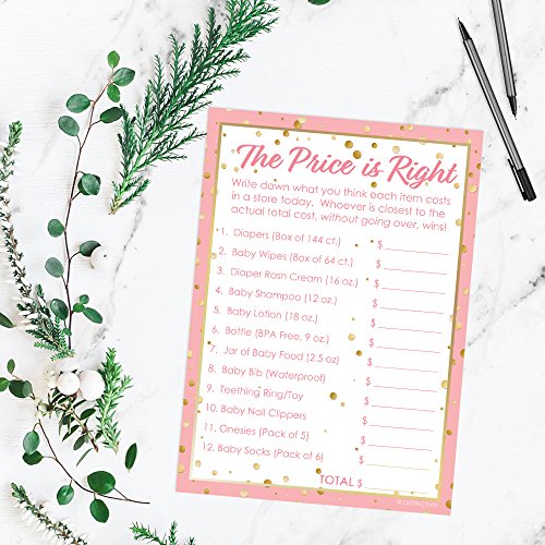 It's a Girl Baby Shower - The Price is Right Game Cards, Pink and Gold (20 Count)