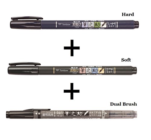 - Tombow Fudenosuke Fude Brush Pen / Soft & Hard & Twin Tips / Value set