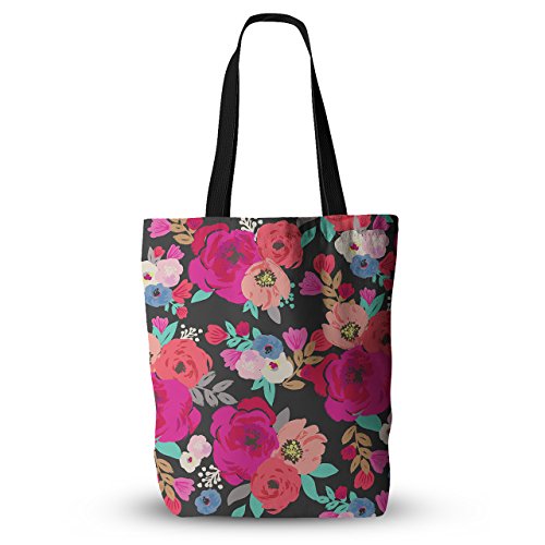 KESS InHouse Crystal Walen "Sweet Pea"-Black Floral Everything Tote Bag, 18" x 18", Multicolor