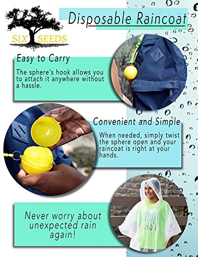 Poncho Disposable Emergency Raincoats Portable Hook Poncho Ball Pack of 6