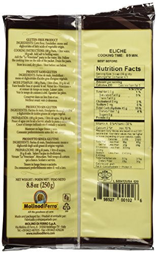 -. Binding : Grocery -. Brand : Le Veneziane -. Label : Le Veneziane -. Manufacturer : Le Veneziane -. ProductGroup : Grocery -. ProductTypeName : GROCERY -. Publisher : Le Veneziane -. Studio : Le Veneziane -. Title : Le Veneziane Gluten Free Eliche Corn Pasta -- 8.8 oz