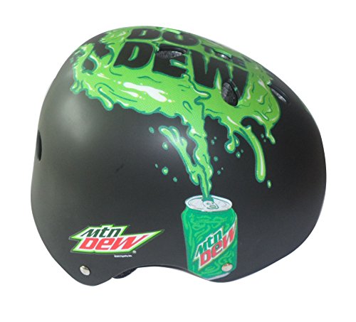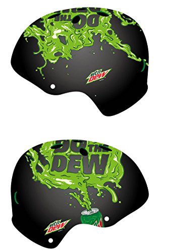 -. Feature : Protective helmet with one of the most well known names in action sports on it, Mountain Dew / ABS hard plastic shell / EPS foam for comfort and maximum protection / 11 vents to keep you cool / Fits head size 21.5" to 22.5"