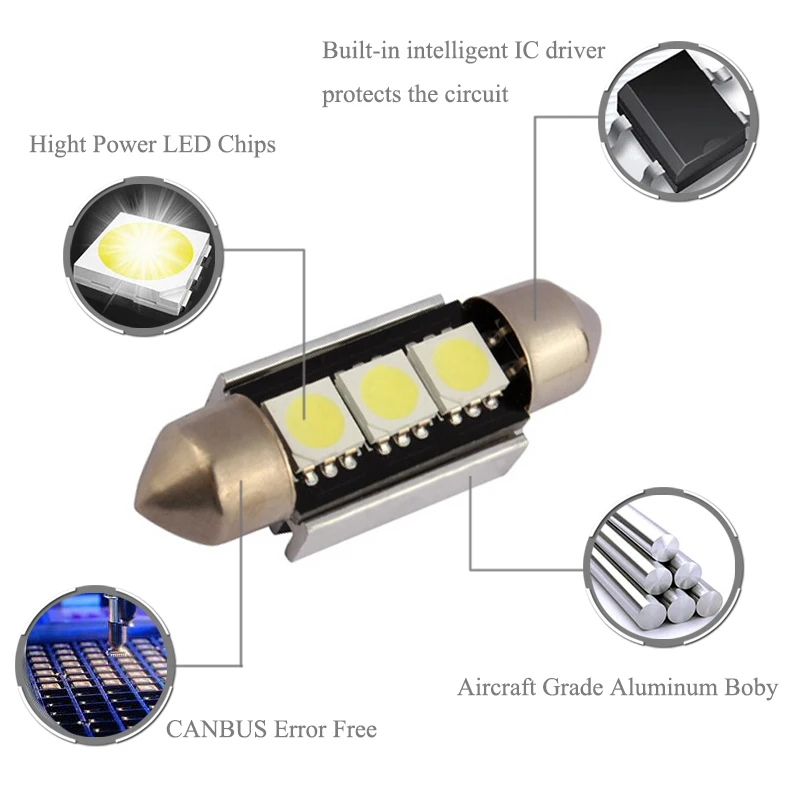Size:36mm (1.50")12V Festoon Dome Light LED Bulbs
