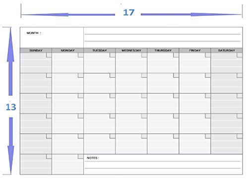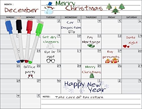 Magnetic Monthly Calendar White Board Planner for your Refrigerator or Office 17" x 13" Inches ● Includes: Perpetual Dry Erase Calendar- Planner ● 4 Magnetic Color Dry Erase Markers!