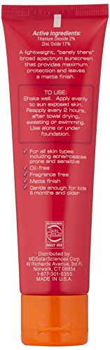 -. Feature : 1.7 oz / A lightweight, "barely there" broad spectrum sunscreen the provides maximum protection and leaves a matte finish. / Silky smooth and blends quickly. / Hypoallergenic and non-comedogenic. / Naturally derived and safer mineral UVA-UVB protection helps reduce the risk of photoaging and skin cancer.