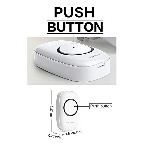 PHYSEN Model CW Wireless Doorbell kit of 1 Transmitter and 2 Plug-in Receivers Operating at 1000 feet Range,BuIld-in 4 Adjustable Volume Levels and 52 Chimes,No Batteries Required for Receiver