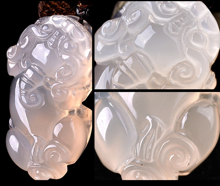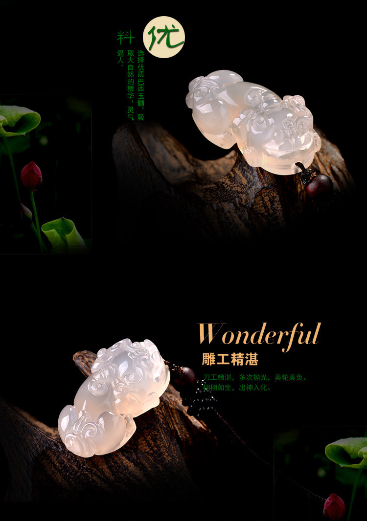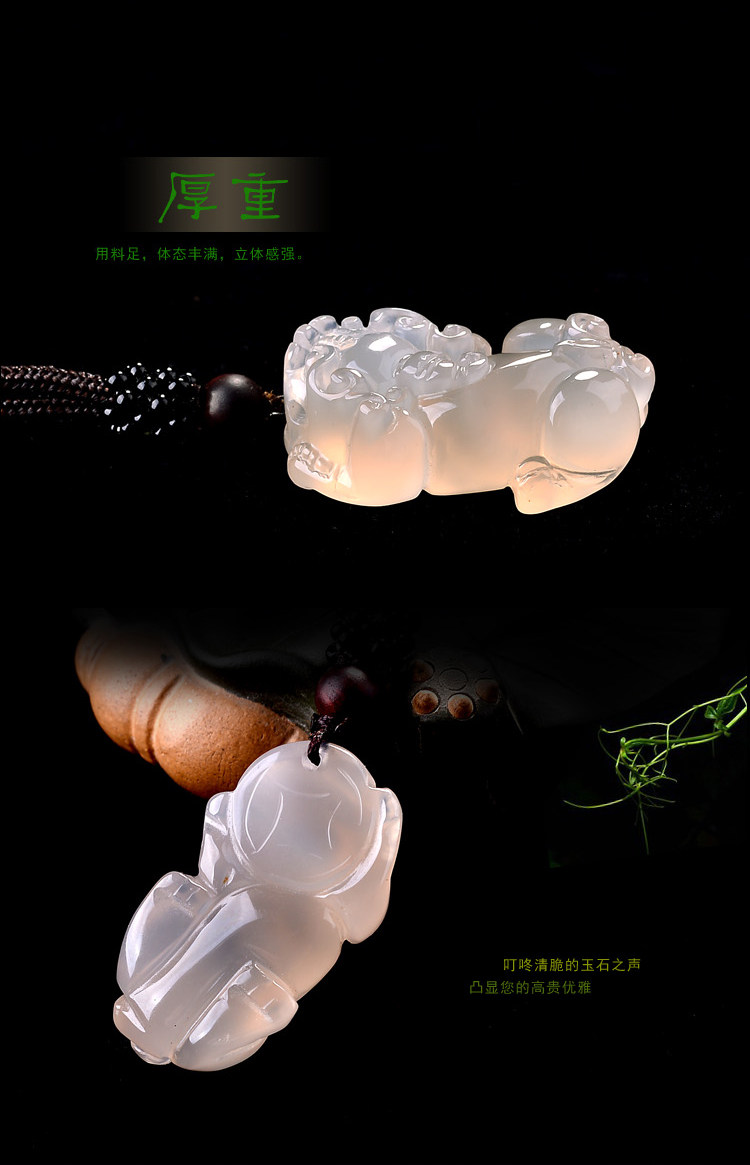 冰种玉髓貔貅挂件玛瑙吊坠玉髓项坠貔貅玉坠情侣饰品