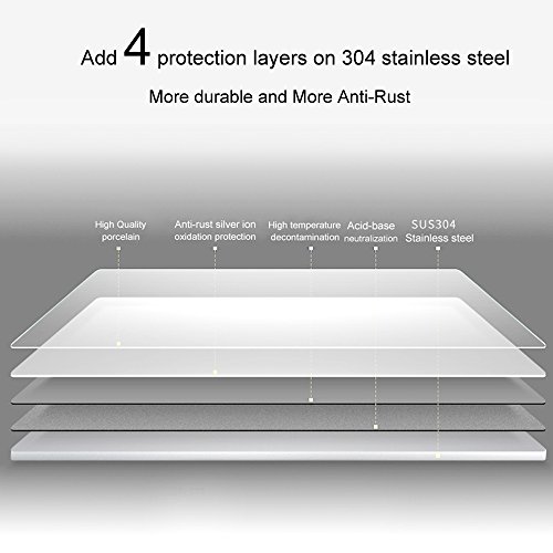 【RUST Free】: Construted of Type 304 premium grade stainless steel, with added 18/10 Chromium/Nickel content to protect against corrosion & rust.4 protection layers are added on 304 stainless steel to make it More durable and More Anti-Rust
