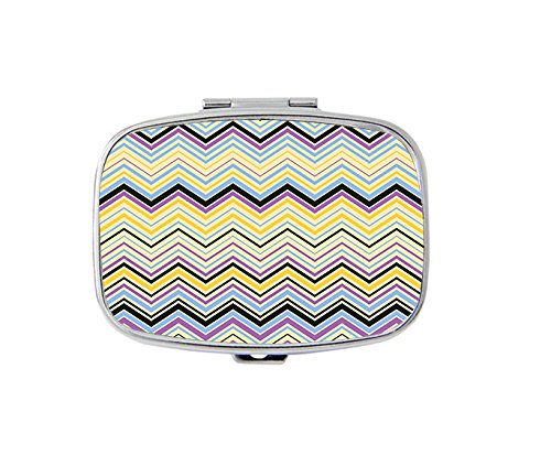 Zigzag pattern with lily yellow blue pill box/pill case--Rectangular pocket pill box/case---Two Compartments for Keeping Pill box/case