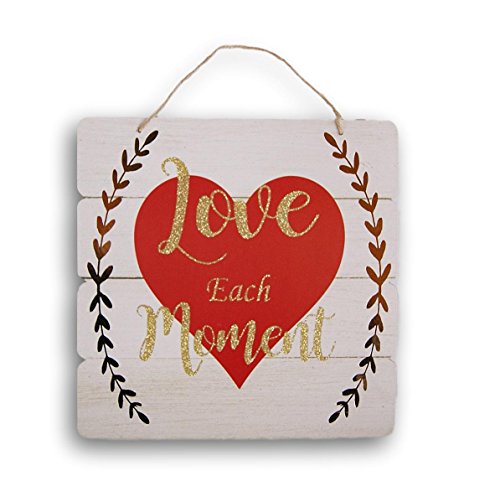 Valentines Themed Glittery Love Each Moment Decor Sign with Jute Hanger - 10.5 x 10.5 Inches