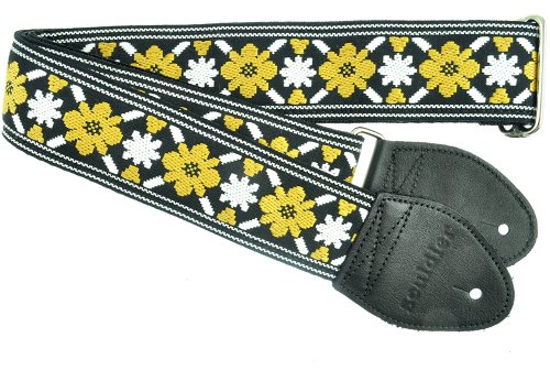 -. Title : Souldier GS1069BK02BK Custom USA Handmade Tulip Rooftop Electric Guitar Strap - Black/Gold