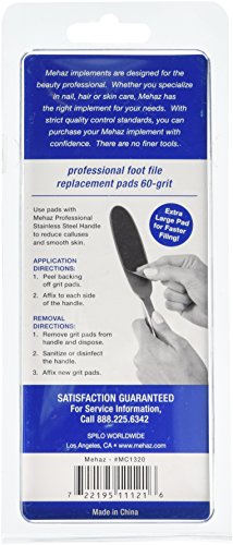 Mehaz Professional Stainless Steel Foot File Replacement Pad, 60 Grit, 50 Count