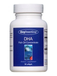 DHA 90sg is available by Allergy Research Group. Fish Oil Concentrate -A rich source of docosahexaenoic acid (DHA, C22:6 omega-3). DHA is important for maintaining the fluidity and function of cell membranes, particularly in the retina and the brain. A rich source of docosahexaenoic acid (DHA) prepared from molecularly distilled cold water fish, such as cod, mackerel, salmon, and shark. DHA is an omega-3 fatty acid and is important for maintaining the fluidity and function of cell membranes, particularly in the retina and the brain. The product provides a minimum of 45% DHA in an easy-to-swallow, small capsule. Every batch is tested to insure purity and the absence of heavy metals and other potential contaminants. Allergy Research Group® dietary supplement 90 softgels Supplemental Facts: Formulated exclusively for Allergy Research Group® Alameda, CA 94502 Variations in product color may occur. Ingredients: Serving Size: 2 Softgels Servings Per Container: 45 Amount Per Serving Fish Oil ...600mg* (from Sardine, Anchovy, Mackerel) Docosahexaenoic Acid ...270mg* (DHA) Eicosapentaenoic Acid ...24mg* (EPA) * Daily Value not established Contains: Gelatin, Glycerin, Water Dosage: As a dietary supplement, 1 or 2 softgels two (2) or three (3) times daily with meals, or as directed by a healthcare practitioner. WARNINGS: Keep in a cool, dry place, tightly capped.