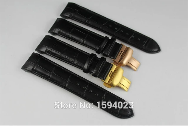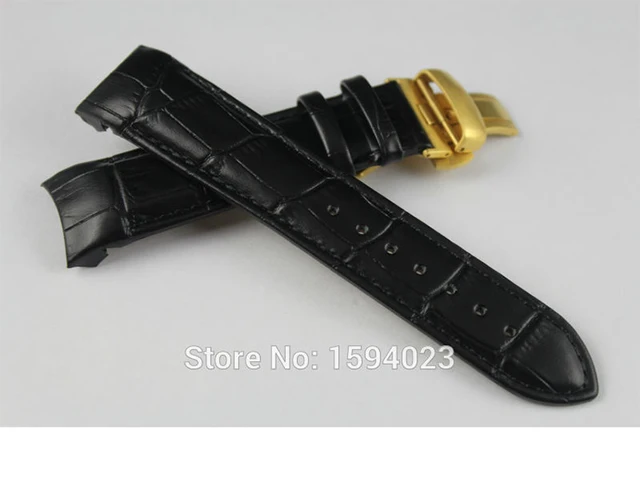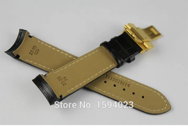 | [해외]22 미리메터 (버클 20 미리메터) T035407A T035410 높은 품질의 황금 나비 버클 + 블랙 정품 가죽 곡선 엔드 손목 벨트 남자 |