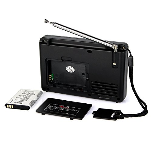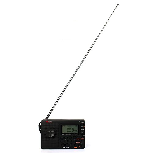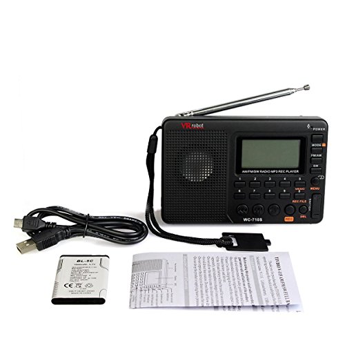 VR-robot WC-710S portable radio with all features you need: FM/AM/SW band, and also have 3 record mode, bass sound music player. You can record your favorite music or talk shows on the radio, and can record the external sounds with the built-in microphone. So this Multi-Functional Radio not only allows you to enjoy the radio, but also bring you a great fun. Specification: --Frequency FM: 87-108MHz AM: 522-1710KHz (9K), 520-1710KHz (10K) SW: 4.75-21.85MHz --Memory Support Micro SD/TF card, Max 32GB --Audio format:MP3, WMA --Output power:2W --Power supply:600mAh BL-5C lithium battery (included) --Charging:DC 5V, Micro USB interface --Size:120 x 79 x 23mm / 4.7 x 3.1 x 0.9 inch --Weight 142g/0.32lb Package Includes: 1 x VR-robot WC-710S radio 1 x BL-5C battery 1 x USB charging cable 1 x Hand strip with bracket 1 x English manual