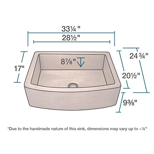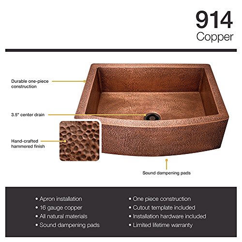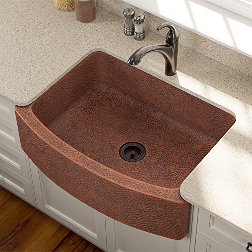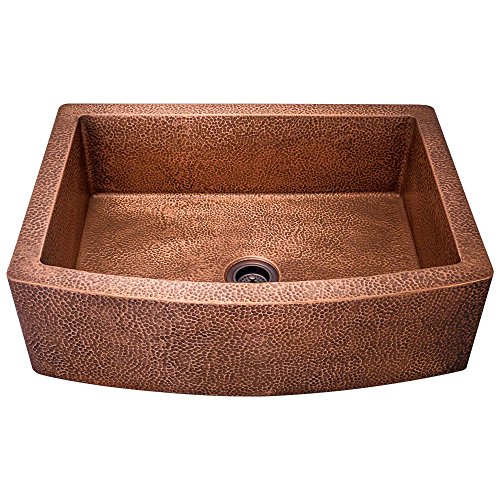 NOSTALGIC STYLING – Call it apron or farmhouse, this sink boasts a simple hand-hammered, but gently-curved front, and a broad single bowl; all created by artisans from 99% pure copper