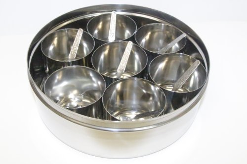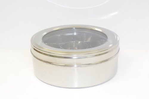 Tabakh Stainless Steel Masala Dabba/Spice Container Box with 7 Spoons - Clear Lid