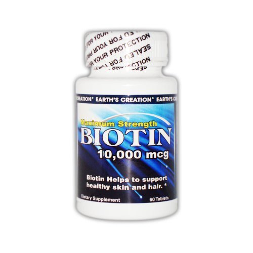-. Binding : Health and Beauty -. EAN : 0608786003279 -. Label : Earth's Creation USA -. Manufacturer : Earth's Creation USA -. PackageQuantity : 1 -. ProductGroup : Health and Beauty -. ProductTypeName : HEALTH_PERSONAL_CARE -. Publisher : Earth's Creation USA -. Studio : Earth's Creation USA -. Title : Earth's Creation Biotin 10,000 mcg Maximum strength support for skin and hair - 60 Tablets -. UPC : 608786003279