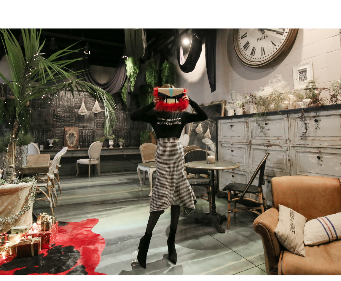 全体的なハウンドトゥースパターンディテールが魅力的であり、