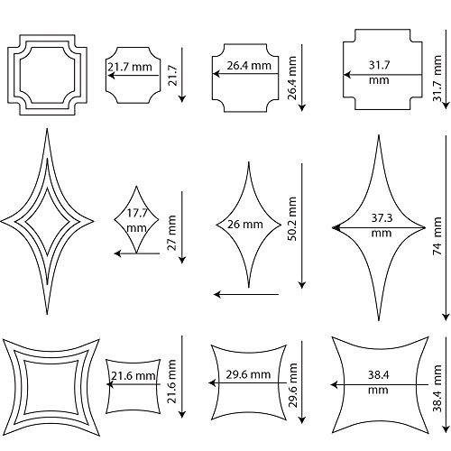 Sweet Elite Tools- Modern Square Element Cutter Set of 9 cutters for rolled fondant and gum paste- By Marina Sousa