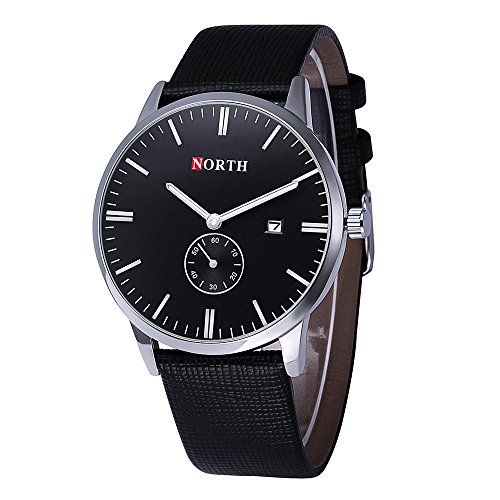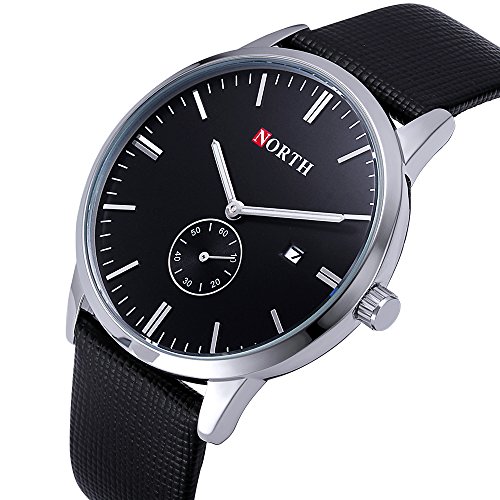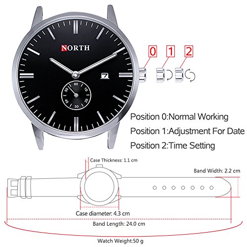1.Classic Simple Design:Unique Sub-dial is a very Simple design. Analog business watch with casual leather strap, Its sleek appearance really makes this wristwatch looks fancy and sophisticated.It's a good Thanksgiving Day/Black Friday/Christmas Day present for yourself, families and friends.