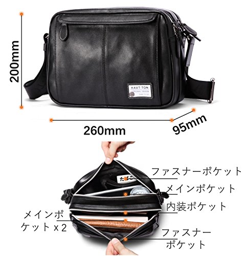 -. Title : HAUTTON ショルダーバッグ 本革牛皮 カバン 鞄 カウレザー 斜め掛け 肩掛け 大容量 通勤 ファション 人気 メンズ レディース ブラック HD004