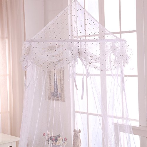 Fantasy Kids Buttons and Bows Kids Collapsible Hoop Sheer Bed Canopy, One Size, White