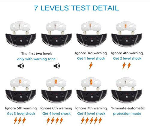 AAG No Bark Collar 7 Sensivity Levels Do You Want Your Dog To Stop Barking In The Middle Of The Night??? To Keep Calm When Going For A Walk Without Being Struggling With It So That It Does Not Bark Anymore? May Those Aggressive Behaviour Be Controlled And Learn Not To Bark In Certain Situations??? With The Anti-Bark Collar You Will Get It!!! The Anti-Bark Collar Is The Ideal Tool To Train Your Dog In A Calm And Dissuasive Way In Their Insecure Or Aggressive Behaviors. You Decide When To Wear The Anti-Bark Collar On Your Dog. Operation Mode: At The First Bark, The Collar Applies A Short Warning Tone. If A Second Bark Occurs Within Thirty Seconds, A More Intense Tone Is Sounded. From The Third Bark, A More Intense Tone Is Sounded Along With A Short, Mild Shock. This Pattern Is Repeated Through 7 Correction Levels. The Use Of The Warning Tone Sets Up A Pattern That Your Dog Will Quickly Learn Is Caused By Its Own Barking, The Warning Tone Reminds Your Dog Without Applying Painful Stimulus. To see the operation, see figure 6. Control The Endless Barks! Adjust The Anti-Bark Collar Tight Enough So That The Electrodes Are In Contact With The Dog's Skin And Do Not Rotate Around The Neck For Greater Efficiency! Your Purchase Includes: * 1 X No Bark Receiver. * 1 X Adjustable Nylon Strap * 1 X Test Light * 2 X Long Shock Electrodes *2 X Short Shock Electrodes. Satisfaction Guaranteed Or Your Money Back! Order Your Anti-Bark Collar And Start Training! 0
