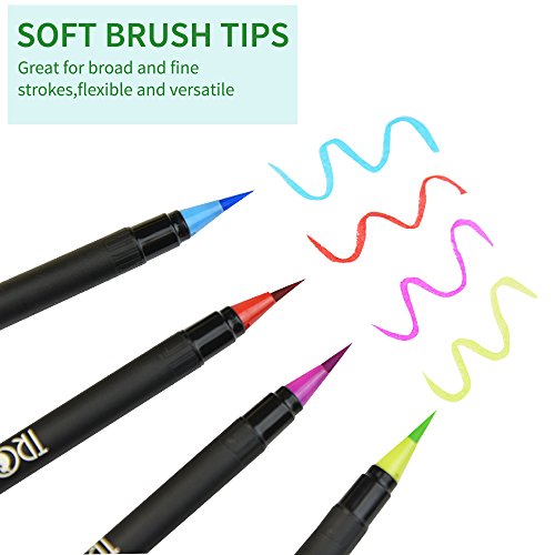 - FREE BONUS TOOLS TO DRAW AND PAINT LIKE A PRO – We’ve included everything you need to use your brush tip markers with ease. FREE tutorials instruct you how to use coloring brush tip pens with confidence, while FREE wrap up pen case keeps your watercolor pens organized. Plus, FREE coloring eBook is the watercolor painting canvas for beginners or for those who love creatively coloring.