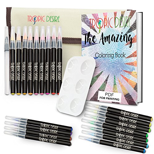 Watercolor Brush Pen Set – Vivid Watercolors for Professionals, Beginners, Adults, and Kids – 20 Watercolor Art Markers and Water Pen + BONUS Roll Up Wrap Case & Coloring Ebook by Tropic Desire