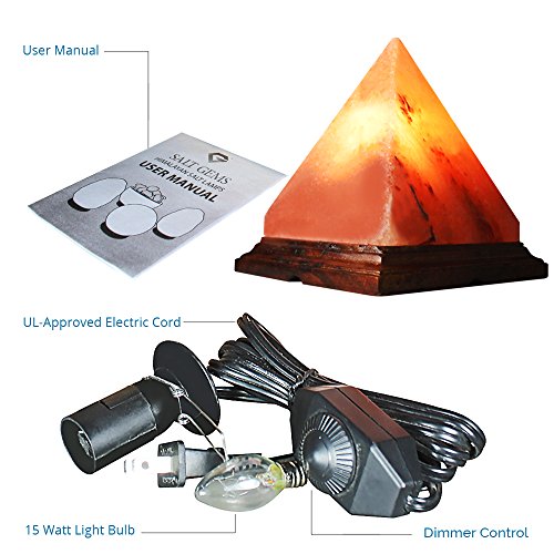 - HOME DECOR: SALT GEMS Pyramid Himalayan Salt Lamp is perfect for Home and Office decor in the day and even better at the night when its gentle glow envelops surrounding with its amber. When it is lit at night, it does create a sense of comfort and relief from fatigue and stress.