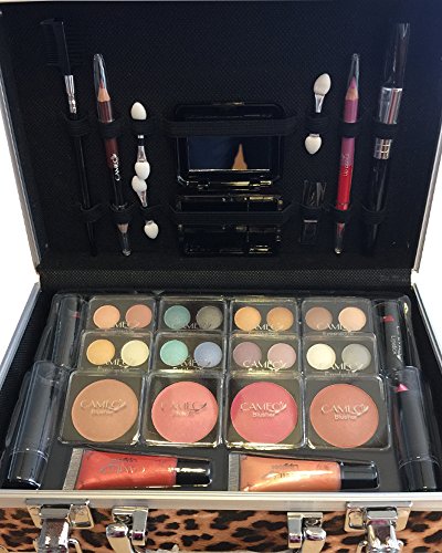 -. Title : Cameo Cosmetics Premium 51pc Beauty Case Make Up Set with Reusable Aluminum Leopard Case - Eyeshadows, Lipsticks, Blushers, Lip Glosses, Brushes, Mirror Box, Applicators, Pencils