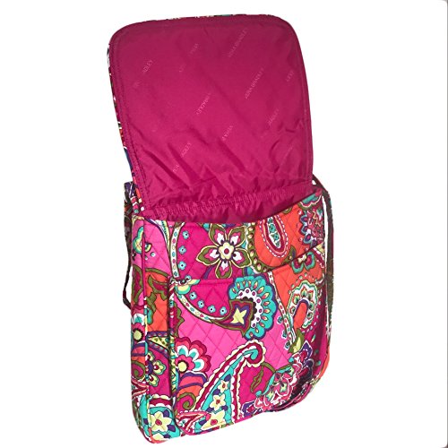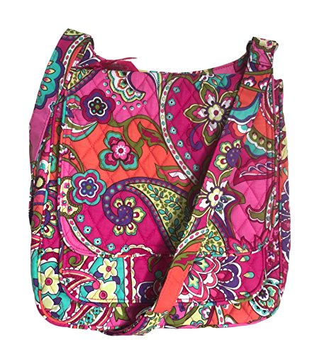 The Mailbag is the ultimate crossbody bag. The adjustable strap provides a custom fit, with a secure zip-top closure. The quick-access front flap conceals two slip pockets (one large enough for a Vera Bradley notebook or a tablet computer) while the zip pocket on the back keeps phone and keys secure. Two slip pockets add to the organization inside the zippered pocket. It measures approximately 12 inches (L) x 11 inches (H) x 2.5 inches (W) with a 53 inch adjustable strap. Machine wash cold, gentle cycle, only non-chlorine bleach as needed, line dry.Feature