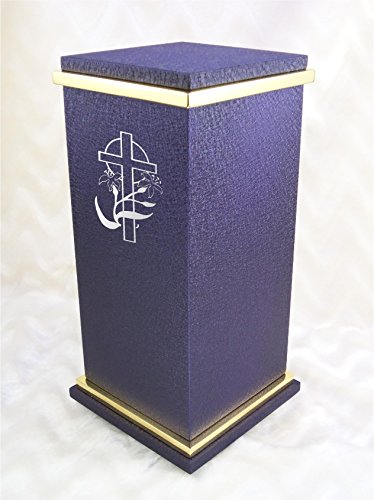 PERSONALIZED Custom Engraved Cross & Flowers Cremation Urn Vault by Amaranthine Urns, made in the USA, Eaton RG Polished Gold (up to 200 lbs living weight) (Deep Sea Blue)