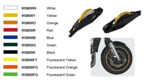 Studio : Keiti Publisher : Keiti Product Description Contents include 1 wheel tape with applicator Adds style and functionality to your OE or aftermarket sport bike wheels for a fraction of the cost for a new paint job Made from highly reflective material Uniquely designed gear driven applicator makes installation easy and error free Features strong adhesion to ensure product will not left or peel off Measures 7mm X 7 meters; enough material to cover both wheels Fluorescent tape is available only in yellow and orange