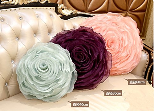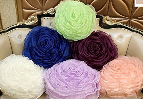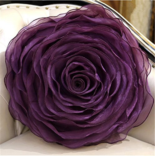 SNW Organza Round Roses Handmade Pillows, Wedding Cushions (Containing Pillow Core),15.7"(40cm),deep Purple