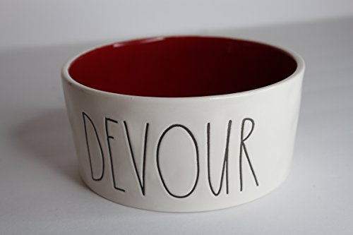 Rae Dunn Magenta Ceramic Large Pet Food Bowl Cat Dog Dish Devour - Cream/Red
