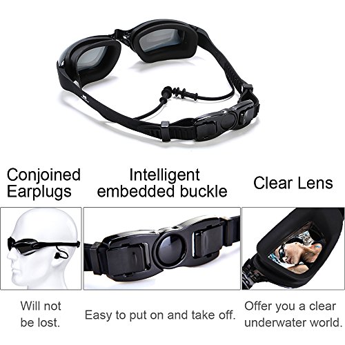 UPGRADE SWIMMING GOGGLES: Removable frame and goggles belt design, easy to storage. Innovative design that the Swimming Goggles directly bring with earplugs to avoid lost. We also provide Swim Cap, nose clip and ear plugs set, meet your need for swimming.